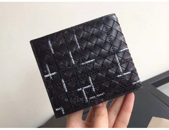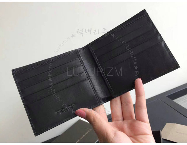 [스페셜오더]BOTTEGA VENETA-113993 보테가 베네타 카프스킨 네로 인트레치아토 아틀라스 폴더 지갑