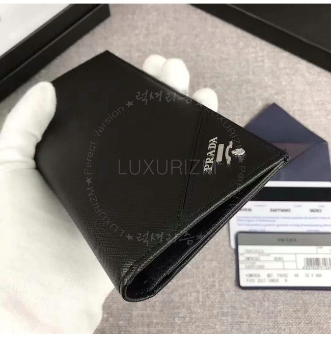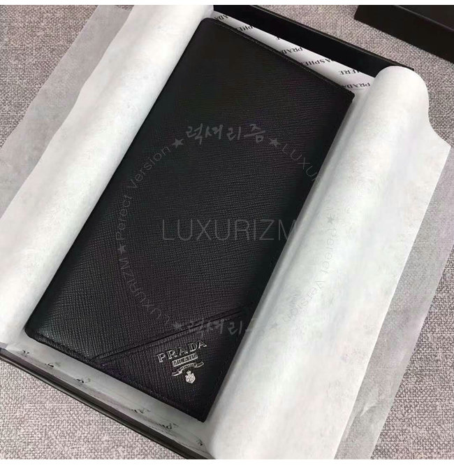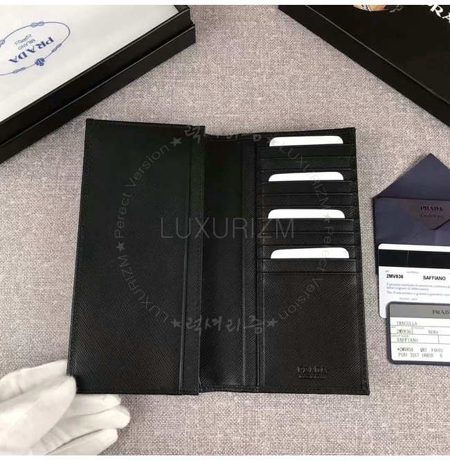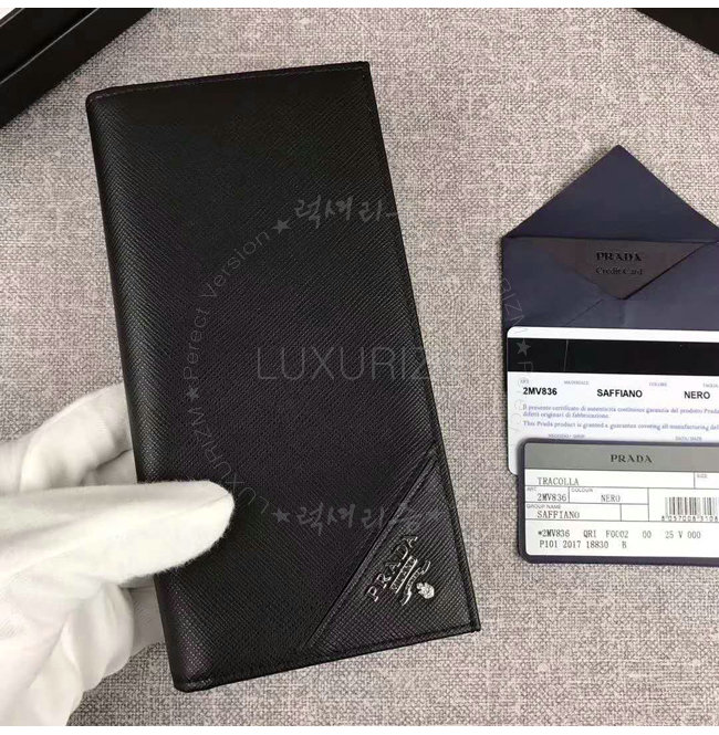 [스페셜오더]PRADA-2MV836 프라다 사피아노 가죽 메탈 로고 블랙 장지갑
