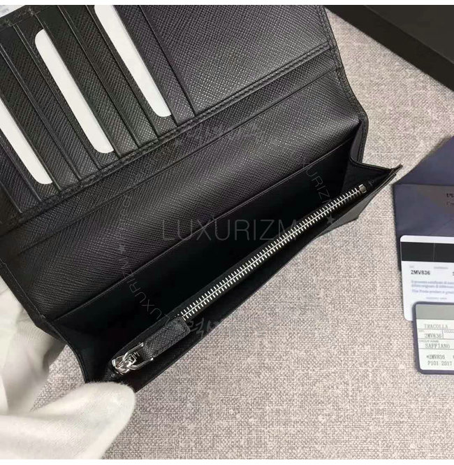[스페셜오더]PRADA-2MV836 프라다 사피아노 가죽 엠보싱 로고 블랙 장지갑