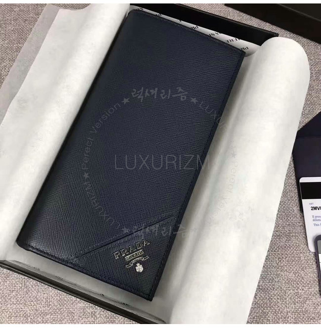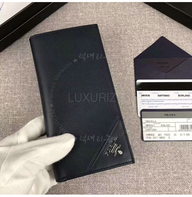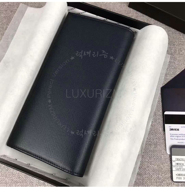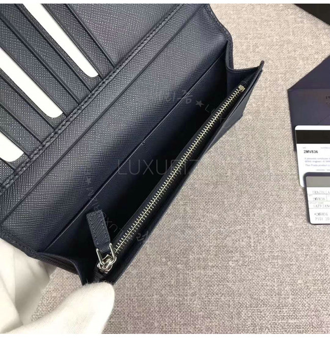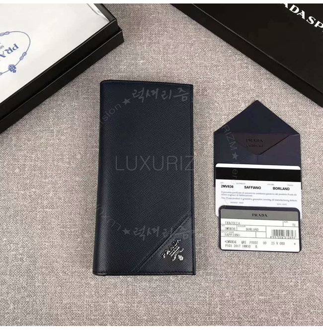 [스페셜오더]PRADA-2MV836 프라다 사피아노 가죽 엠보싱 로고 네이비 장지갑