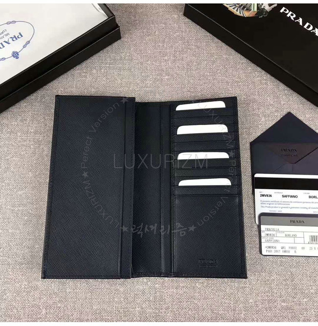 [스페셜오더]PRADA-2MV836 프라다 사피아노 가죽 엠보싱 로고 블랙 장지갑