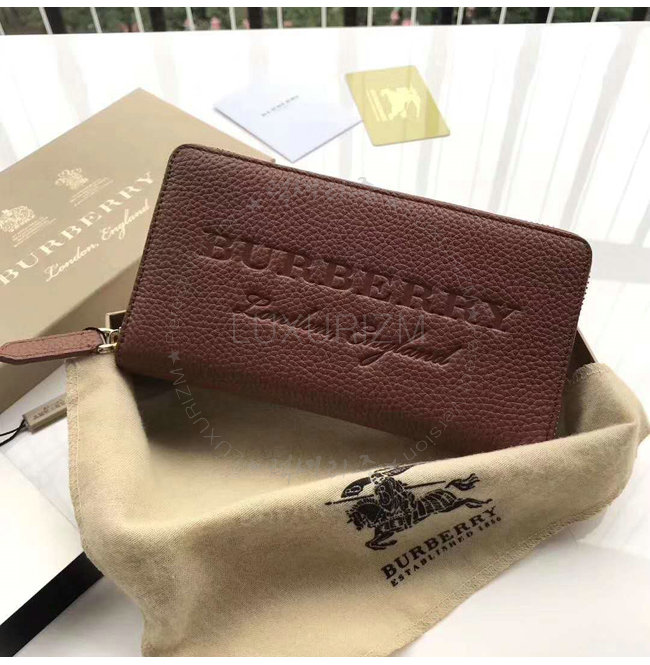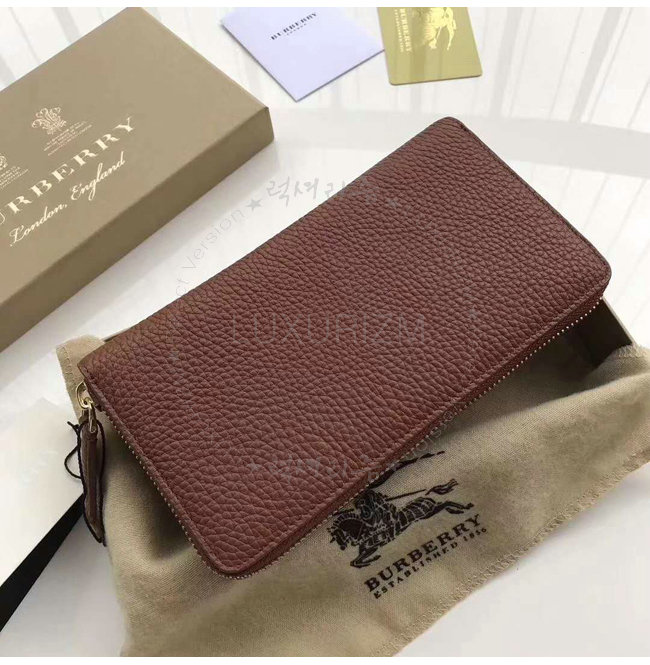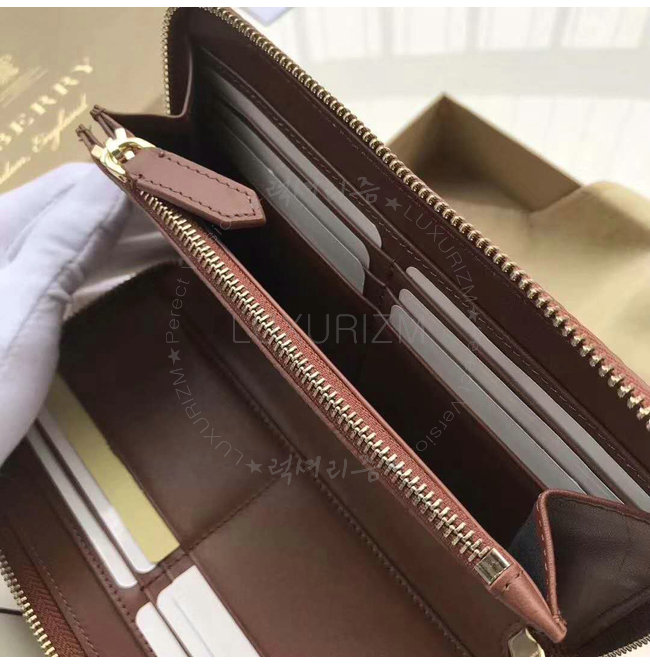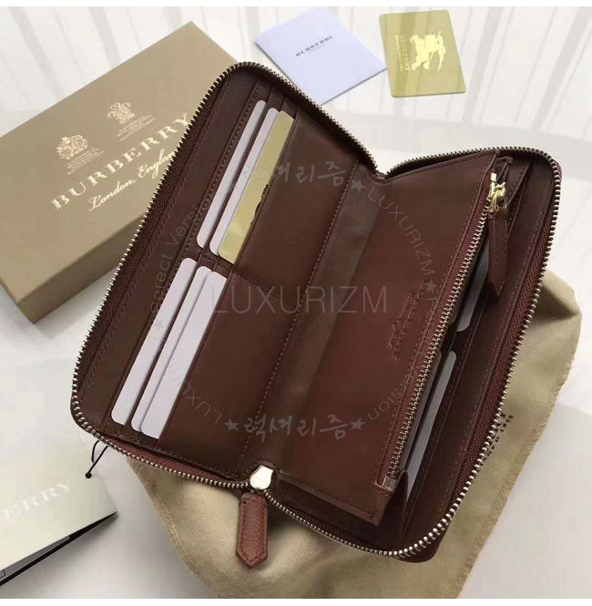 [스페셜오더]BURBERRY-40596661 버버리 브라운 엠보싱 가죽 지퍼라운드 지갑