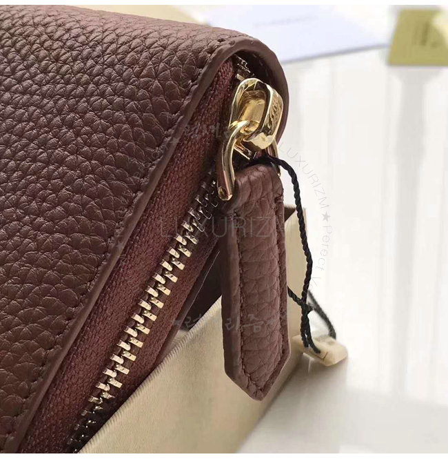 독특한 질감의 부드러운 이탈리아 가죽 소재로 제작된 지퍼 여밈 지갑. 다수의 내부