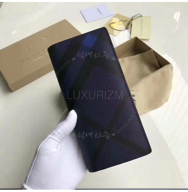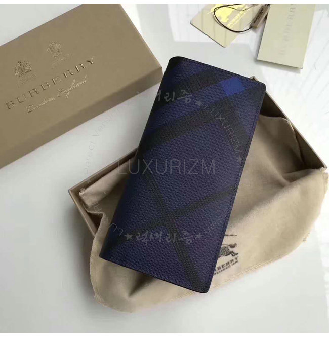 [스페셜오더]BURBERRY-39961811 버버리 네이비 런던 체크 가죽 장지갑