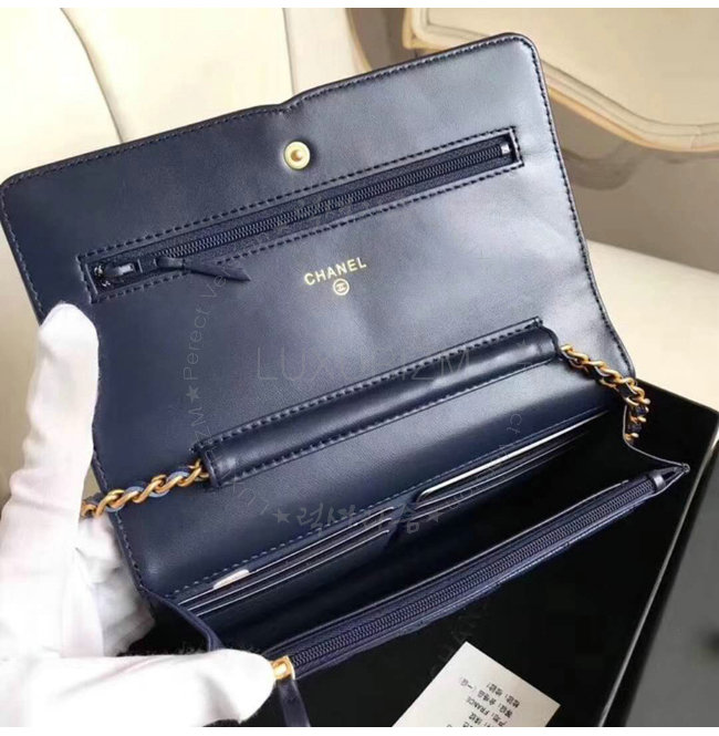 [스페셜오더]CHANEL-A84451 샤넬 그레인드 카프스킨 골드 메탈 네이비 체인 지갑