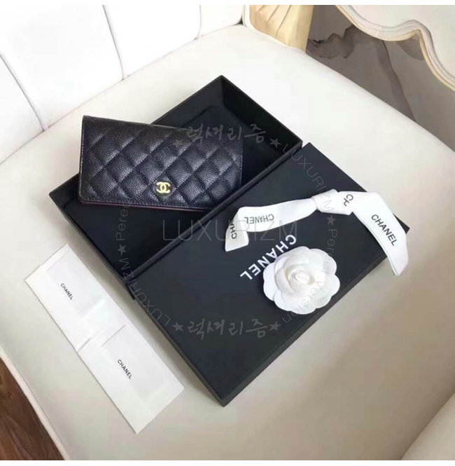 [스페셜오더]CHANEL-A31509 샤넬 그레인드 카프스킨 골드 메탈 블랙 더블 지갑