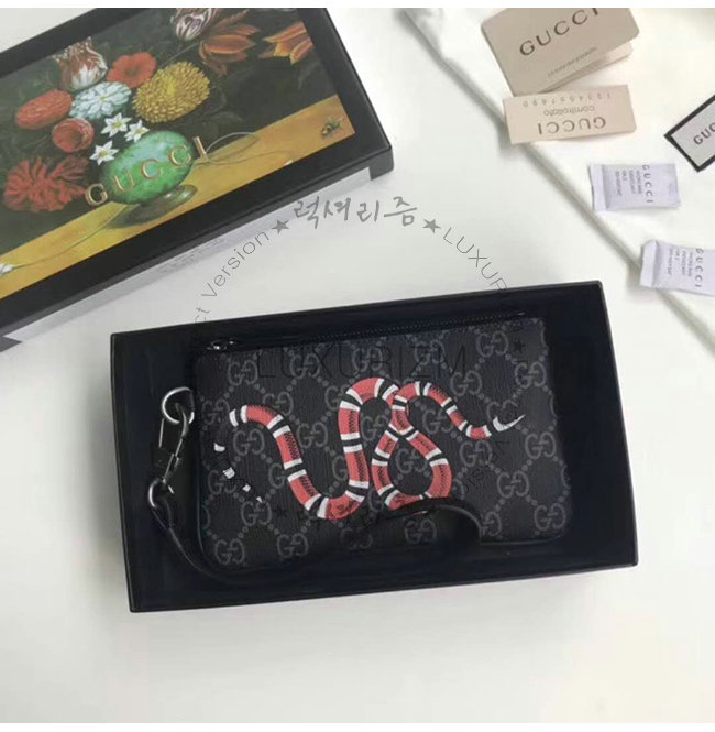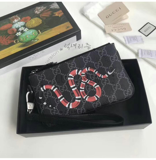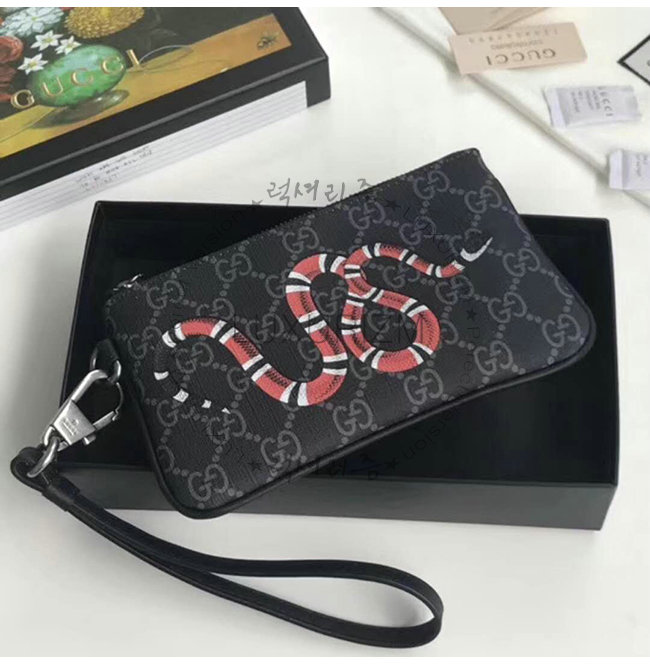 [스페셜오더]GUCCI-522866 1058 구찌 블랙 GG 스프림 캔버스 킹 스네이크 프린트 파우치