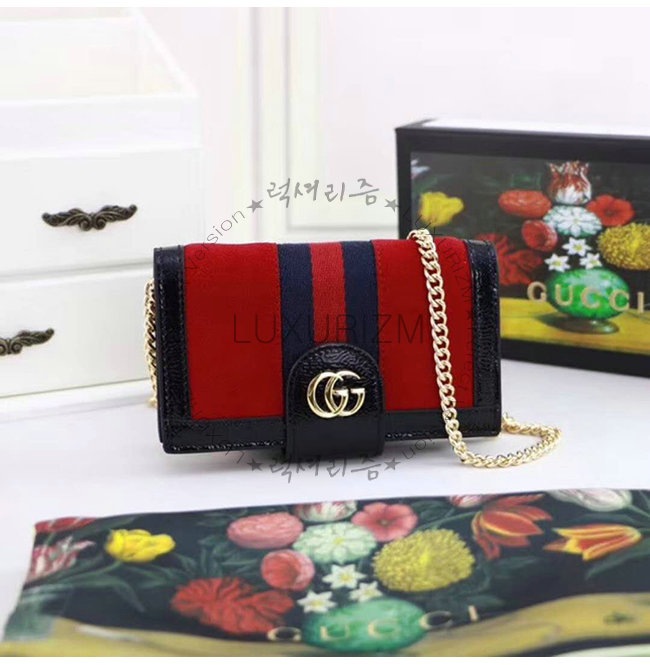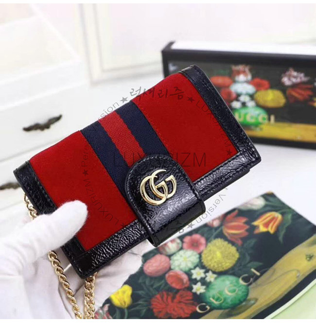 [스페셜오더]GUCCI-523163 8670 구찌 오피디아 레드 스웨이드 가죽 iPhone 7/8 체인 케이스