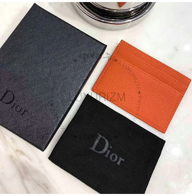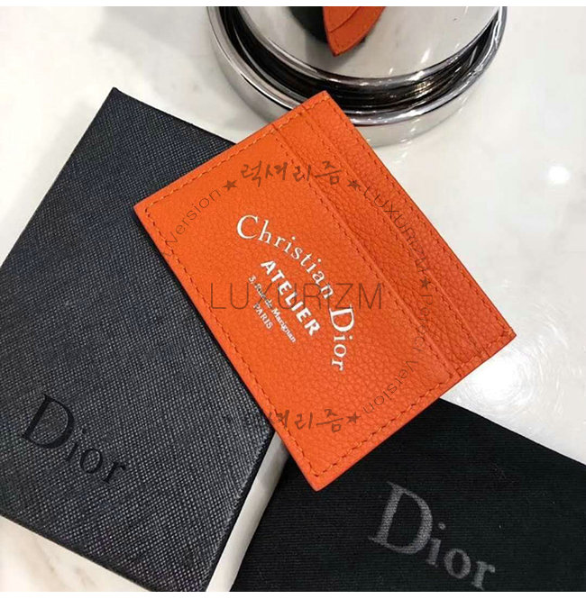 [스페셜오더]DIOR-2ATCH 디올 그레인 송아지 가죽 오렌지 카드 지갑