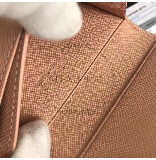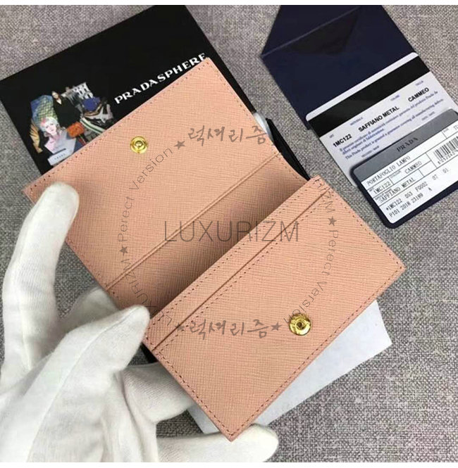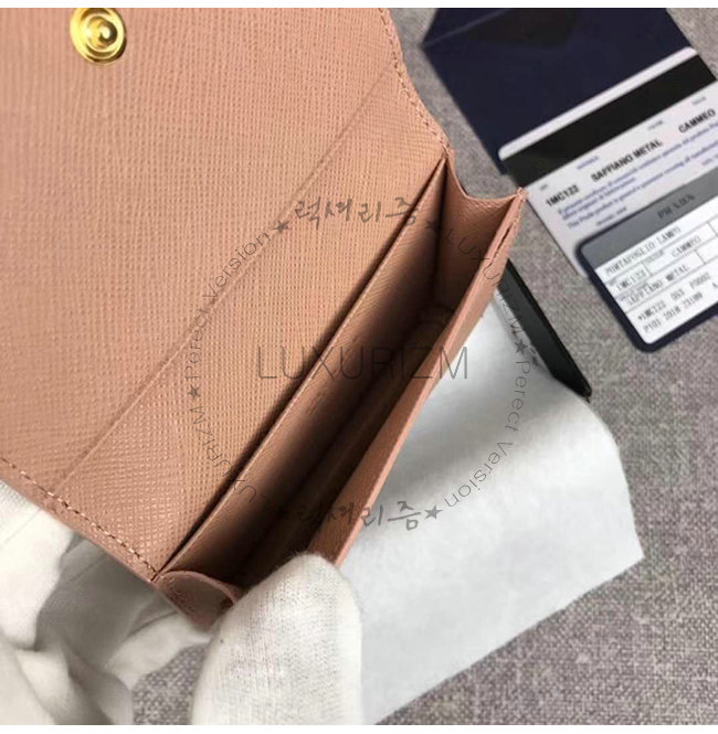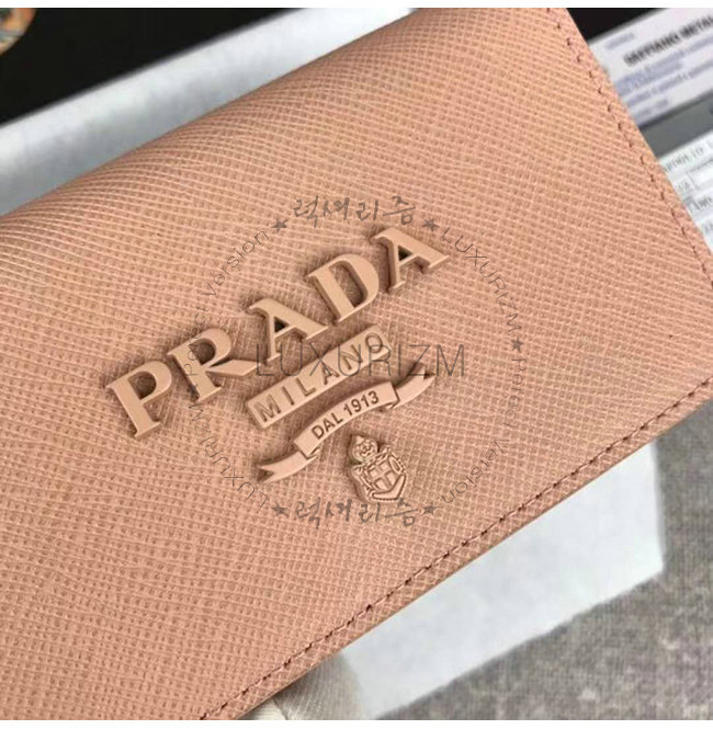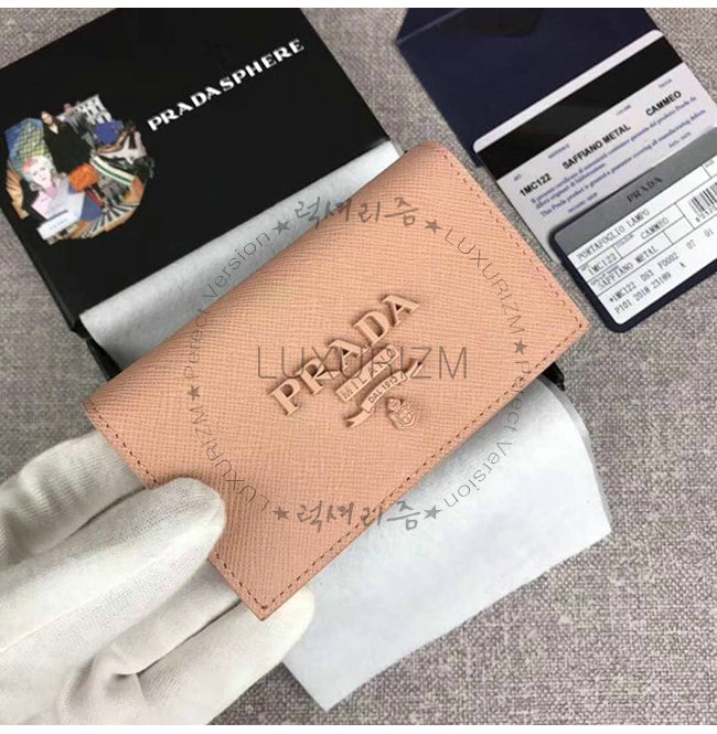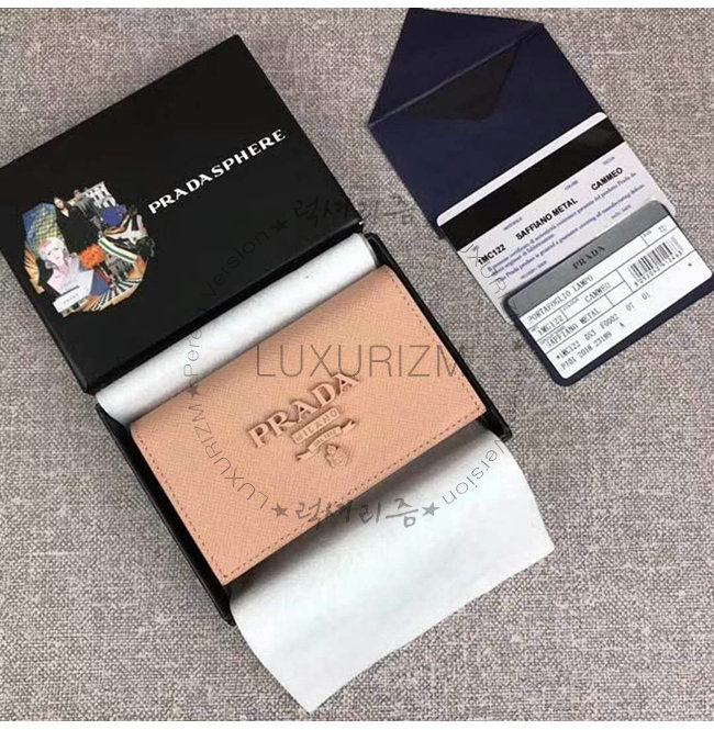 [스페셜오더]PRADA-1MC122 프라다 다크 핑크 사피아노 가죽 톤 온 톤 메탈 레터링 로고 카드 케이스