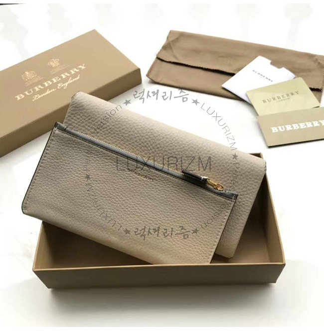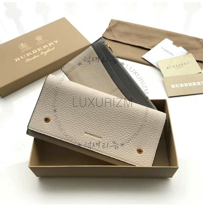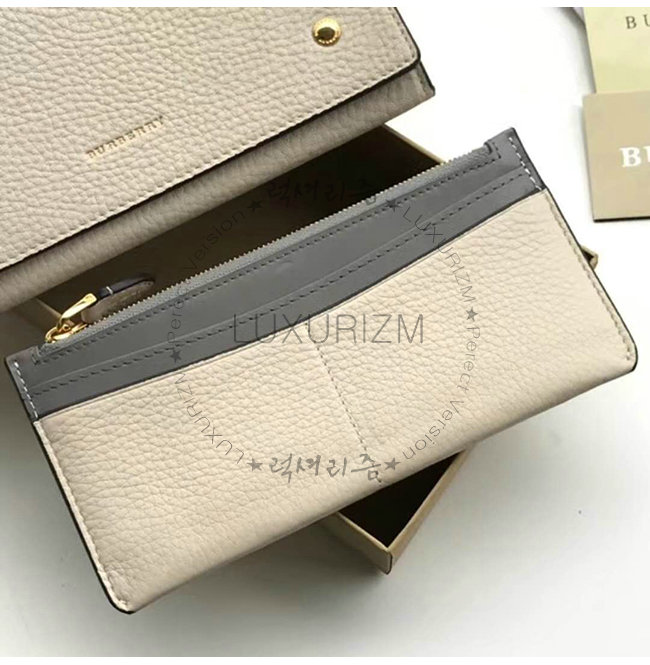 [스페셜오더]BURBERRY-40750941 버버리 라임스톤 투톤 가죽 장지갑