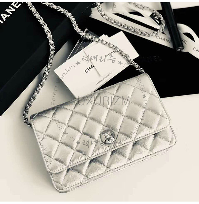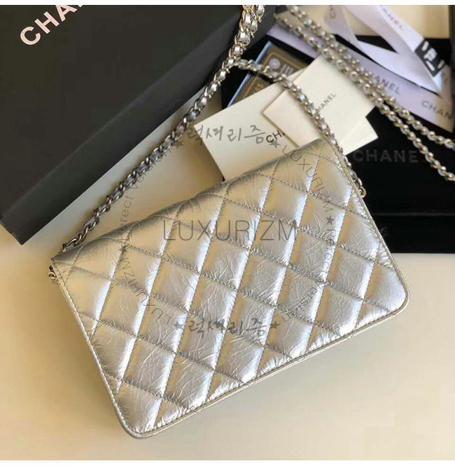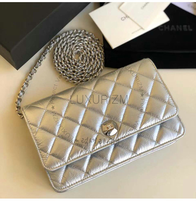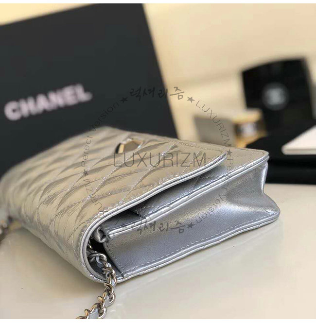 [스페셜오더]CHANEL-A84510 샤넬 실버 메탈릭 램스킨 실버메탈 체인 지갑
