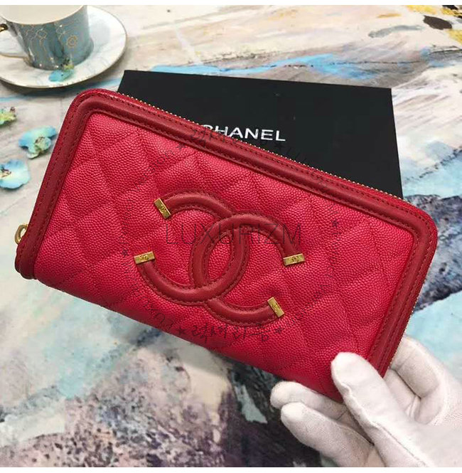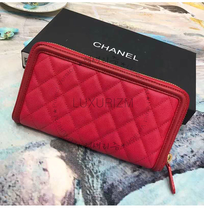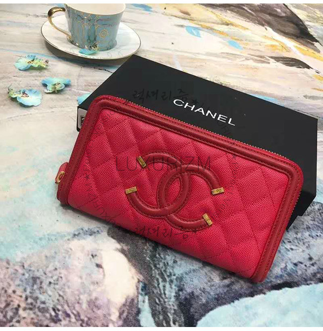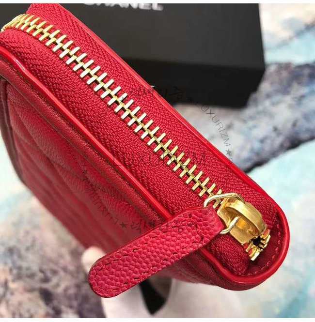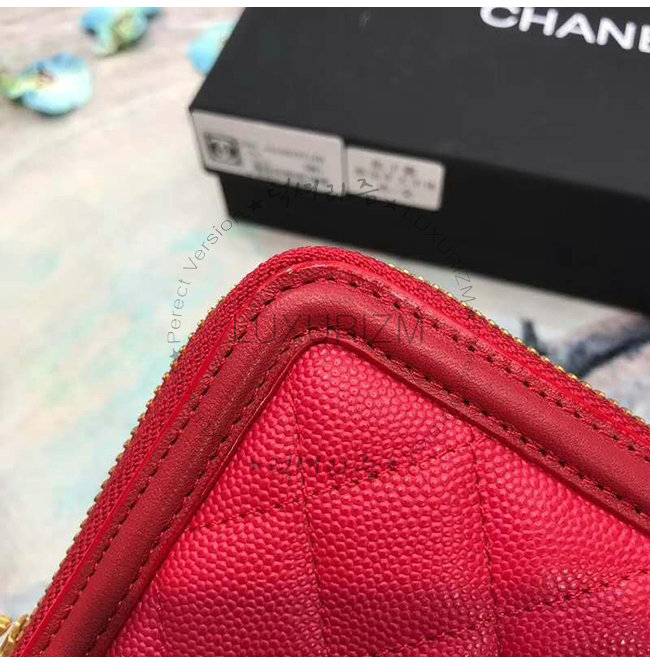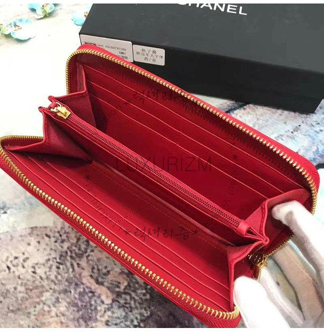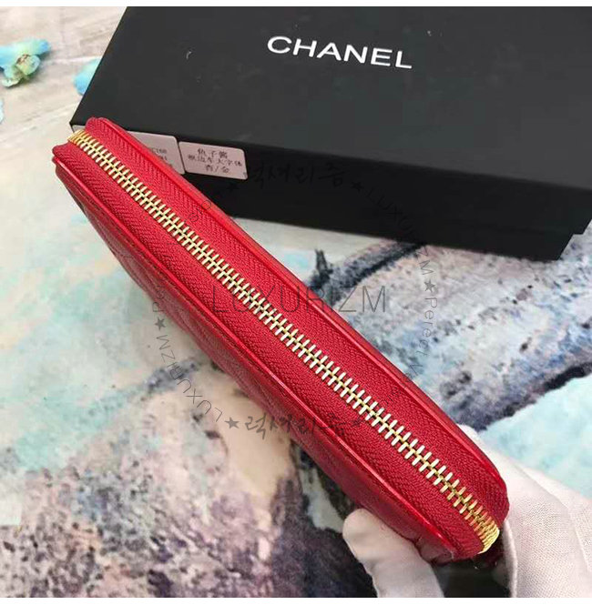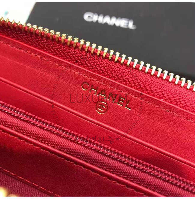 [스페셜오더]CHANEL-A84449 샤넬 레드 그레인드 카프스킨 지퍼 지갑