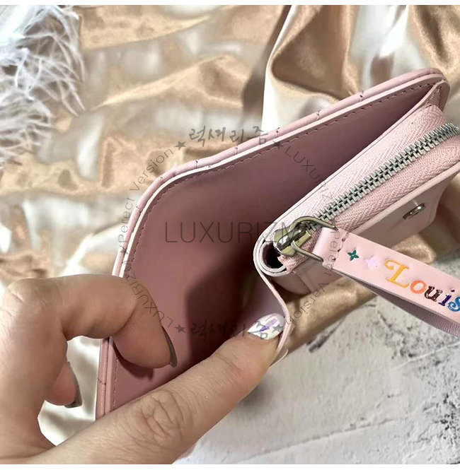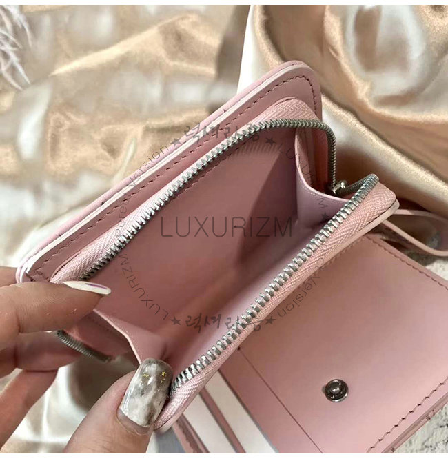[스페셜오더]LOUIS VUITTON-M63791 루이비통 핑크 송아지 가죽 뉴 웨이브 지퍼 컴팩트 월릿