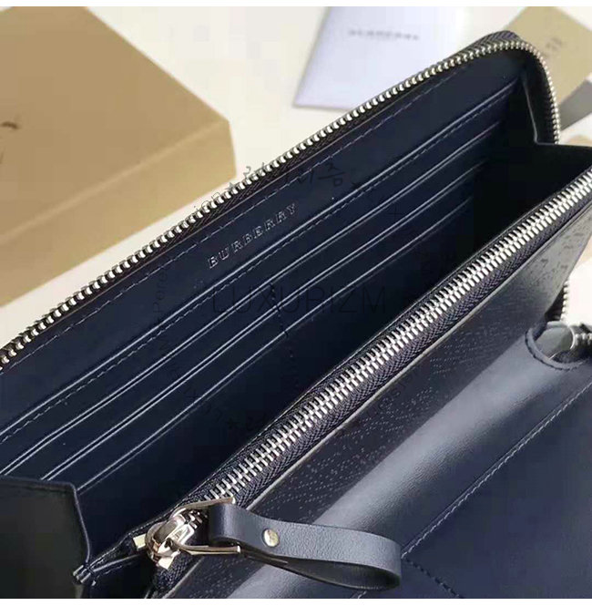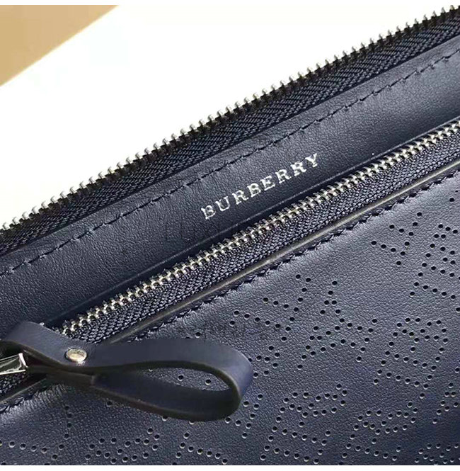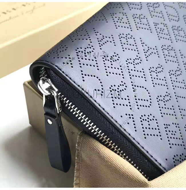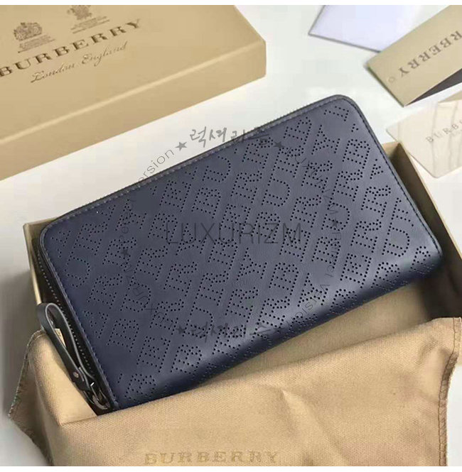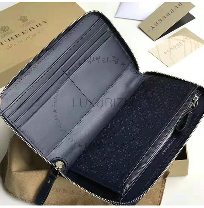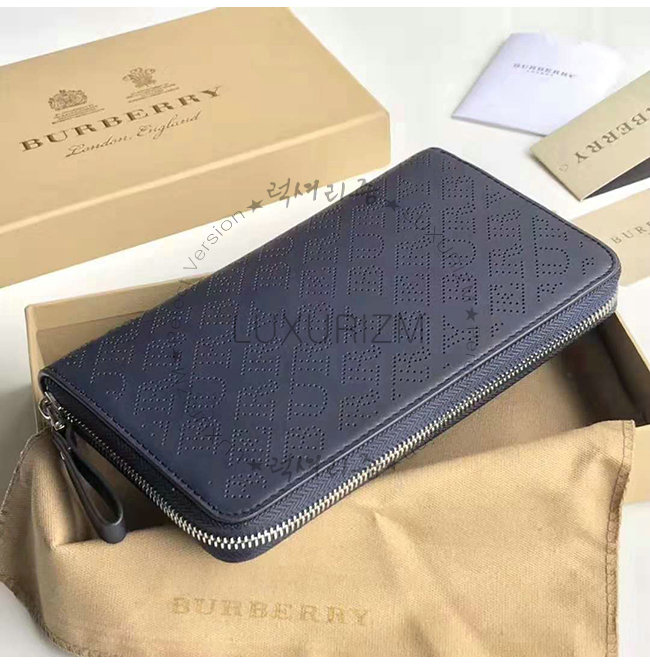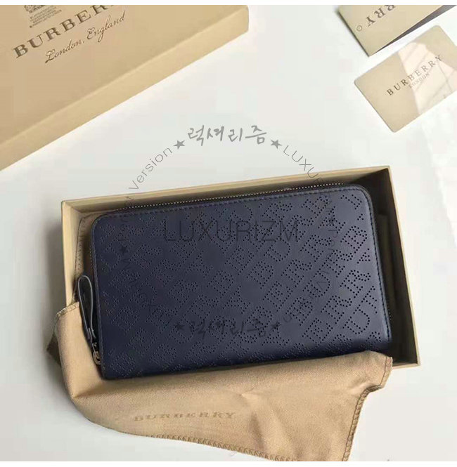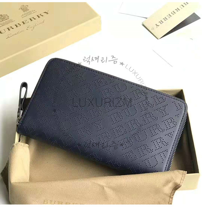 [스페셜오더]BURBERRY-40789551 버버리 네이비 송아지 가죽 퍼포레이트 지퍼라운드 지갑