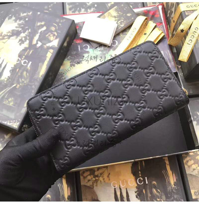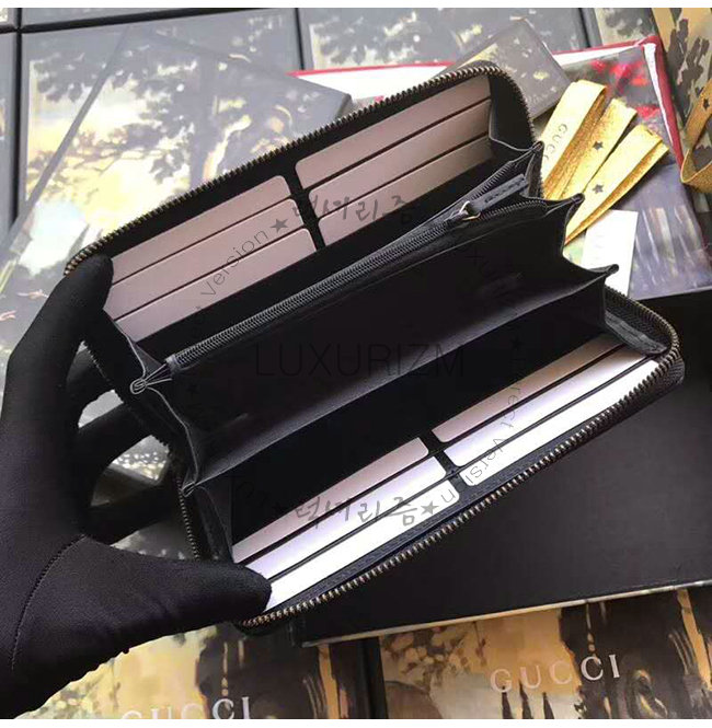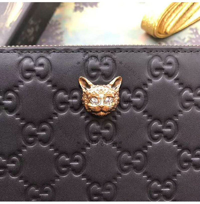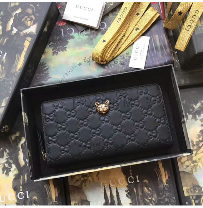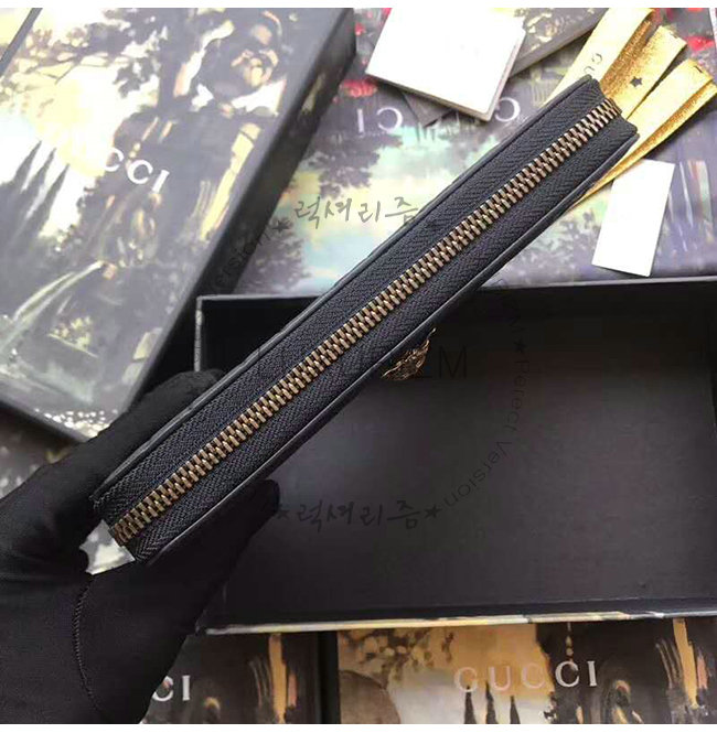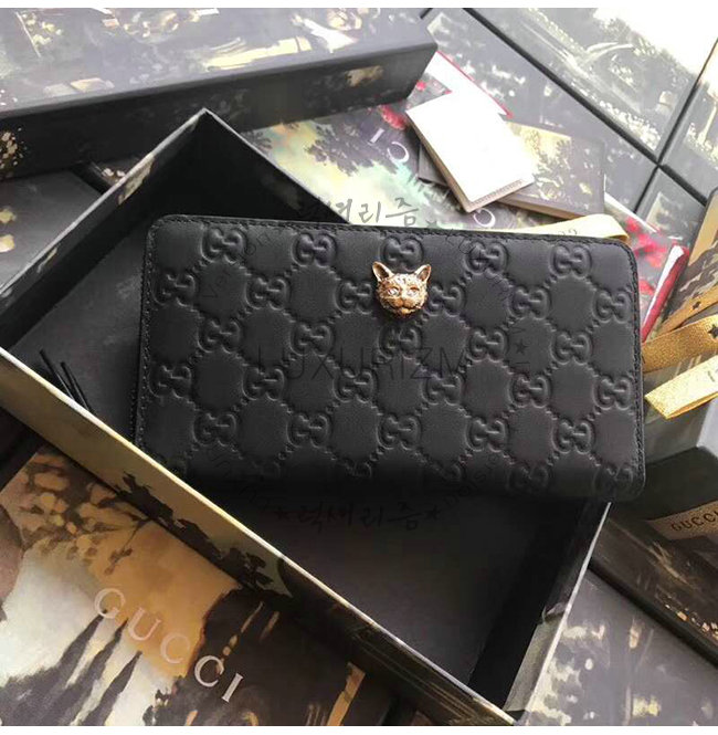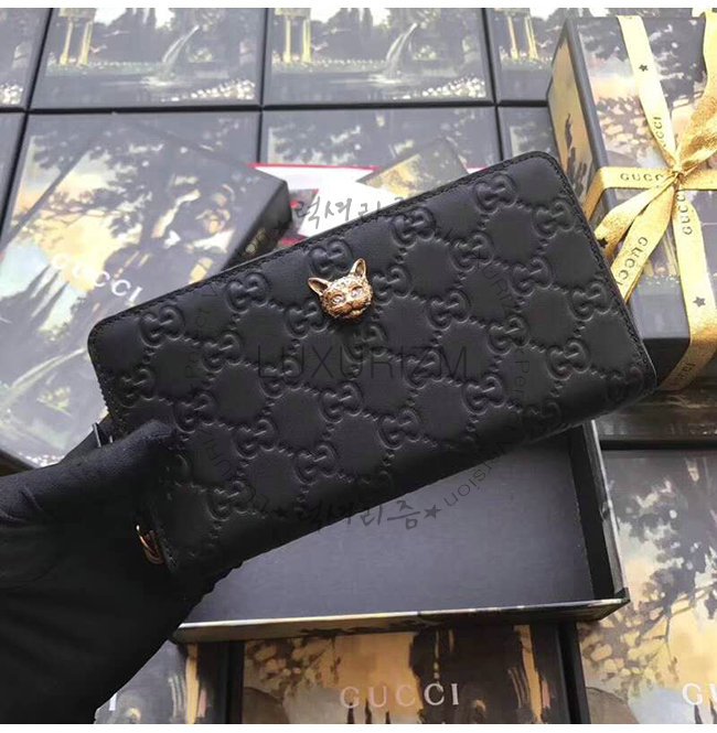 [스페셜오더]GUCCI-548058 1081 구찌 블랙 Gucci 시그니처 가죽 캣 장식 집 어라운 월릿