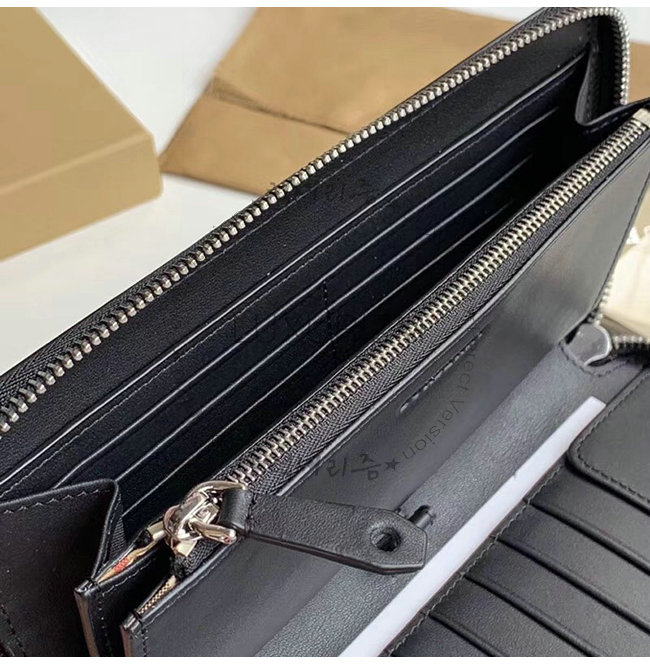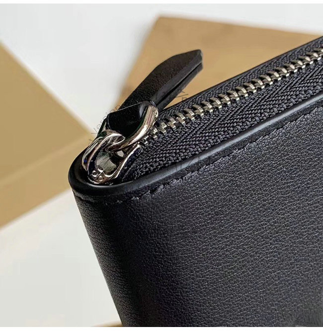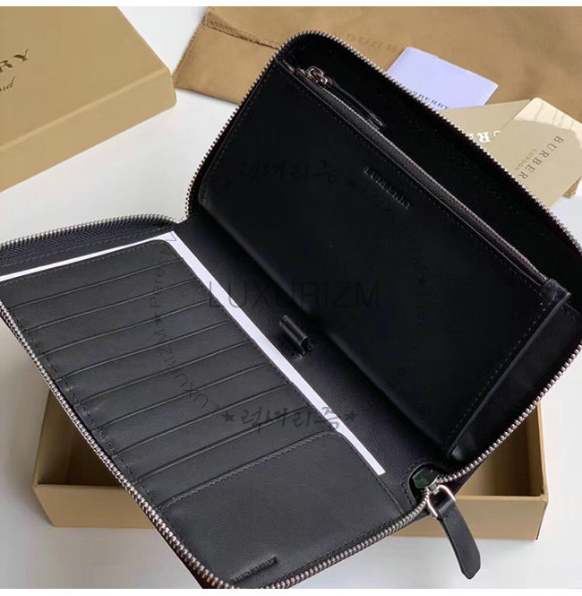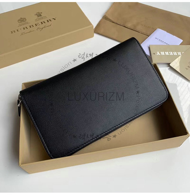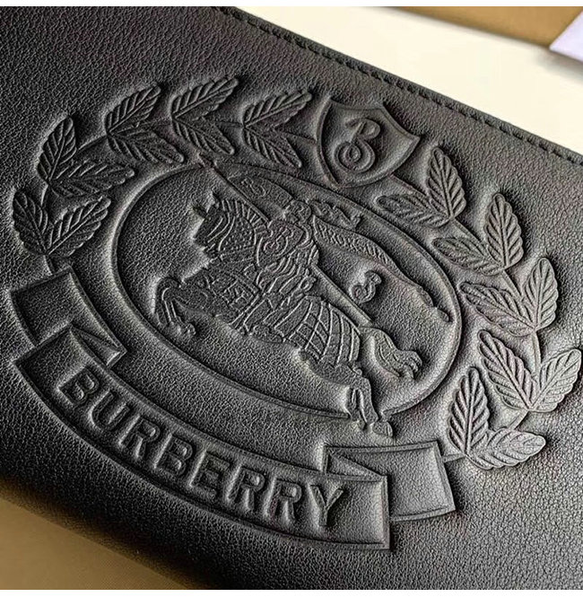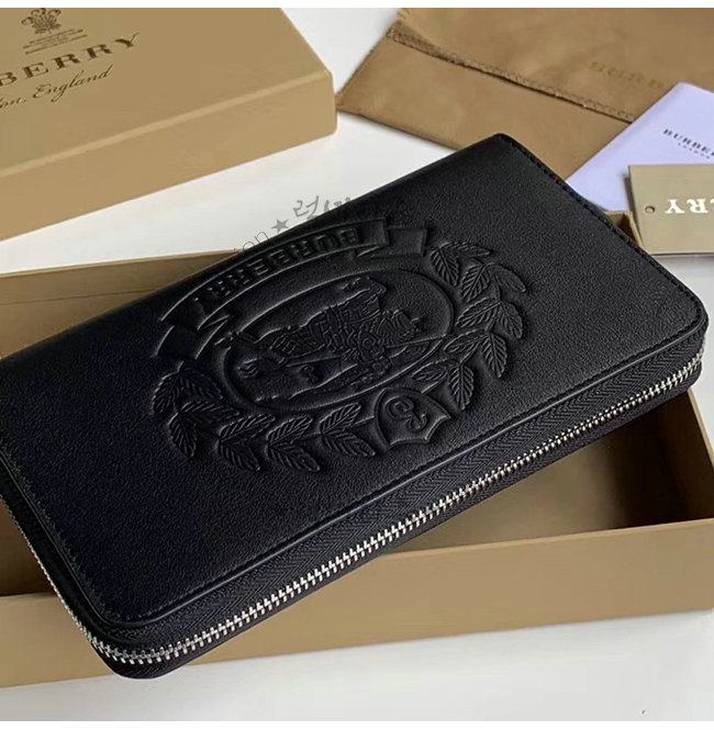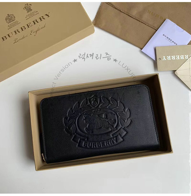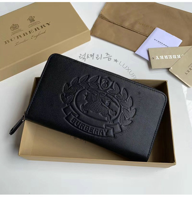 [스페셜오더]BURBERRY-40799261 버버리 블랙 송아지 가죽 엠보싱 크레스트 지퍼라운드 지갑