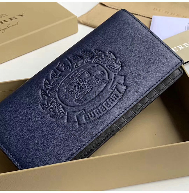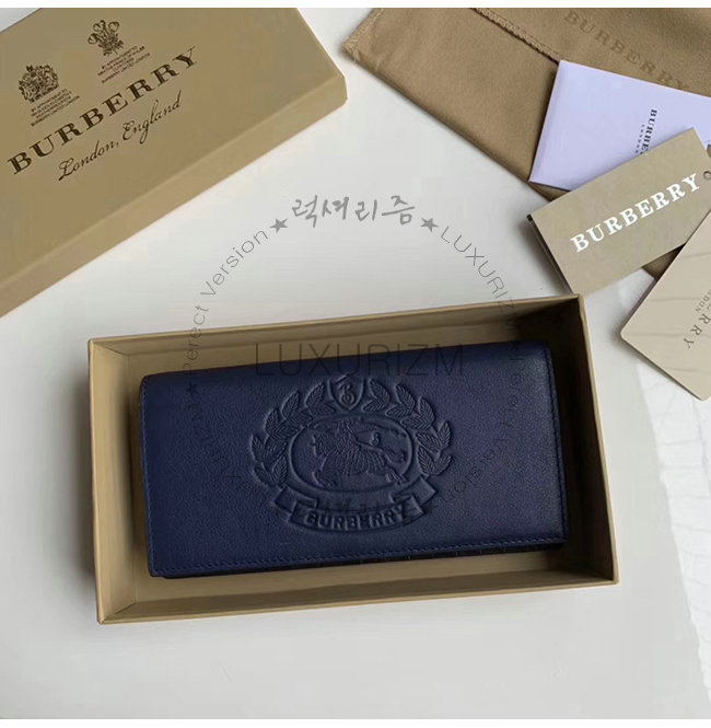 [스페셜오더]BURBERRY-40779851 버버리 네이비 송아지 가죽 엠보싱 크레스트 장지갑