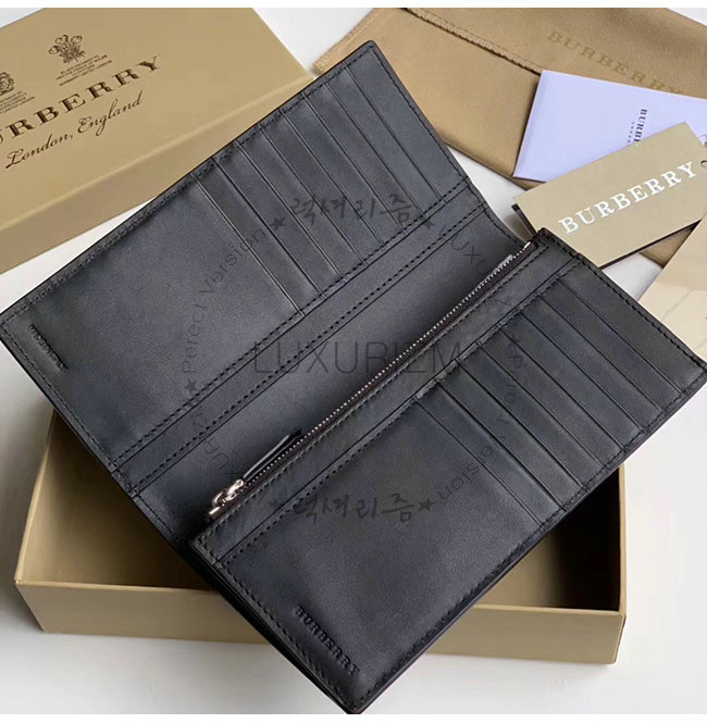 [스페셜오더]BURBERRY-40779851 버버리 블랙 송아지 가죽 엠보싱 크레스트 장지갑