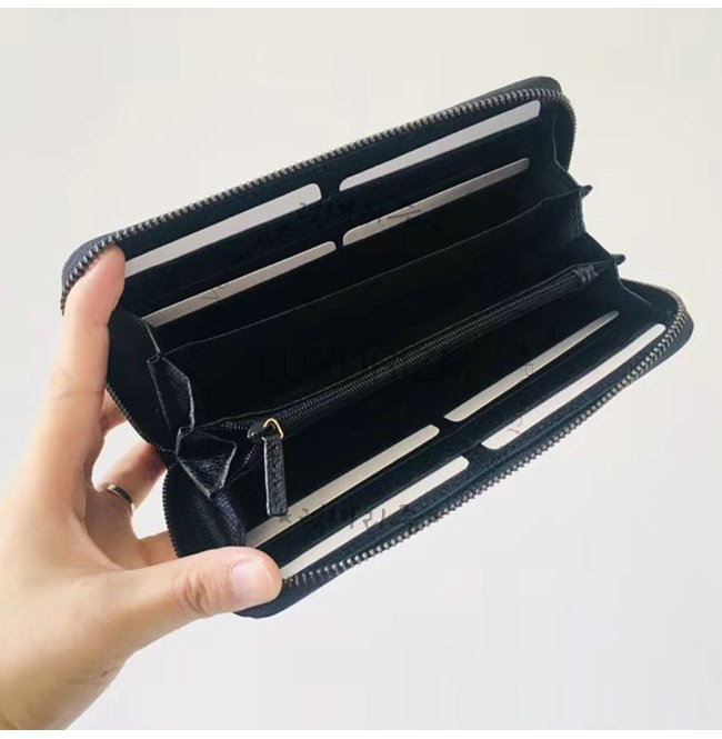 블랙 가죽 12 개의 카드 슬롯과 3 개의 빌 구획 지퍼 동전 주머니.