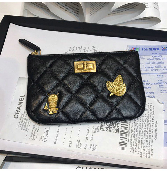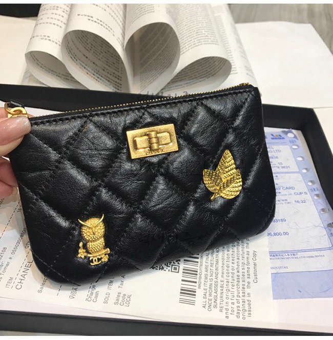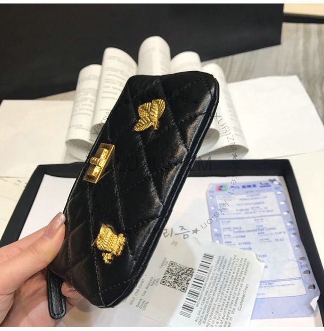 [스페셜오더]CHANEL-A82724 샤넬 블랙 빈티지 카프스킨 참 장식 골드메탈 스몰 2.55 파우치