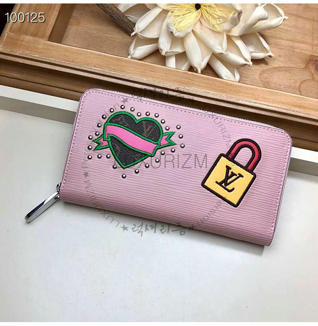 [스페셜오더]LOUIS VUITTON-M63377 루이비통 핑크 에삐 레더 패치 디테일 지피 월릿