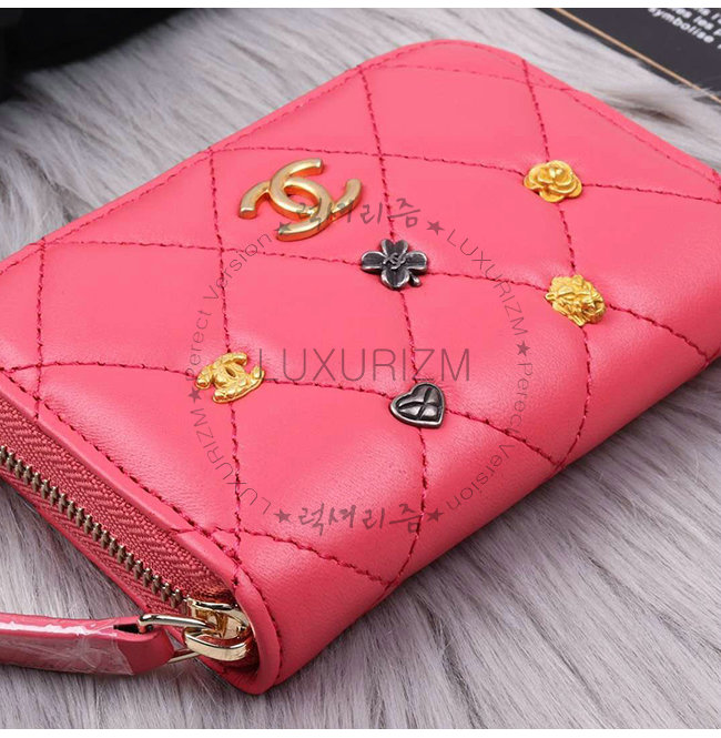 [스페셜오더]CHANEL-A81610 샤넬 핑크 램스킨 스터드 장식 골드메탈 동전 지갑