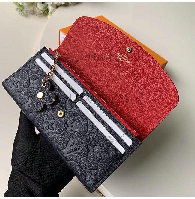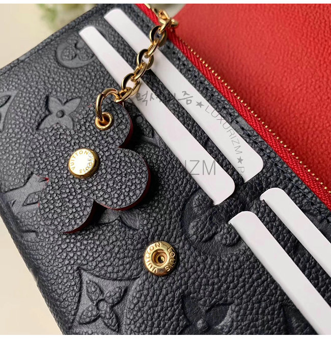 [스페셜오더]LOUIS VUITTON-M63918 루이비통 네이비 모노그램 앙프렝뜨 플라워 참 장식 에밀리 월릿