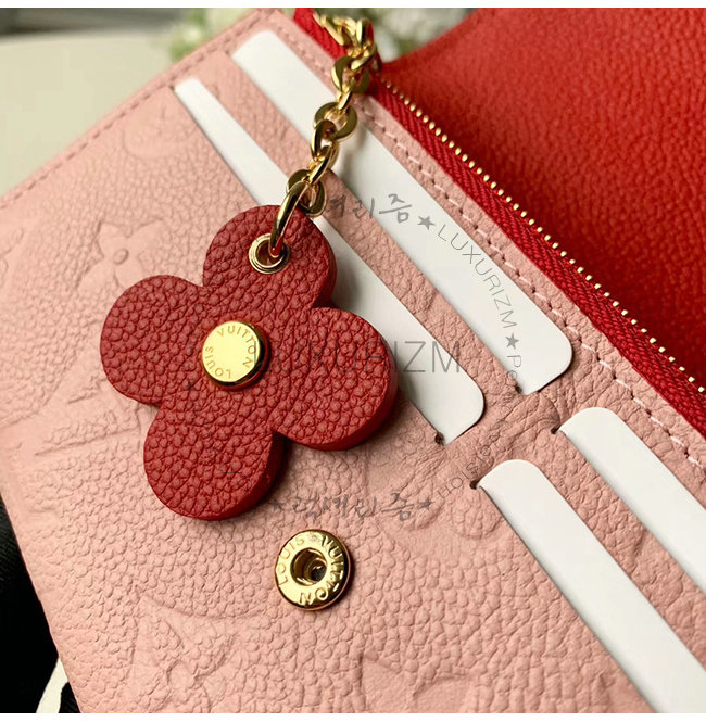 [스페셜오더]LOUIS VUITTON-M64162 루이비통 핑크 모노그램 앙프렝뜨 플라워 참 장식 에밀리 월릿