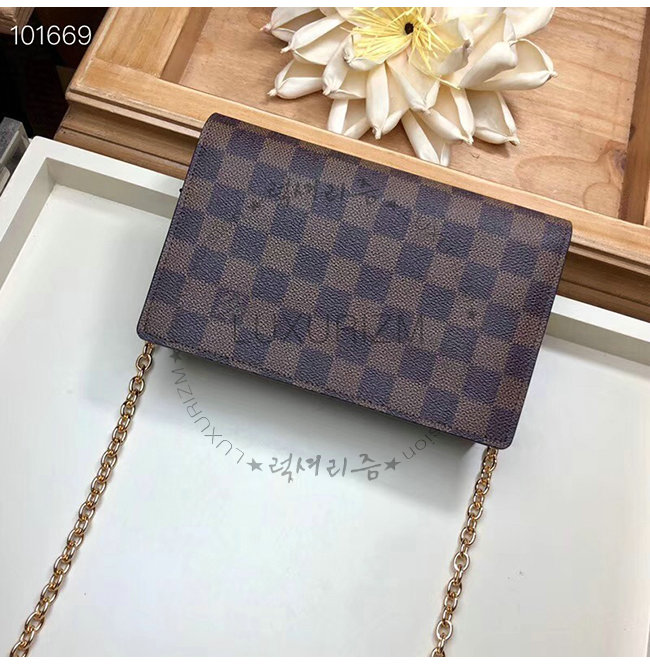 [스페셜오더]LOUIS VUITTON-N60222 루이비통 다미에 버건디 송아지 가죽 바뱅 체인월릿