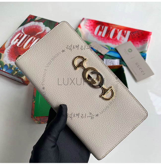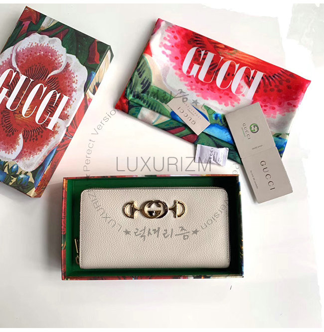 [스페셜오더]GUCCI-570661 9022 구찌 주미 화이트 그레이니 가죽 집어라운 월릿