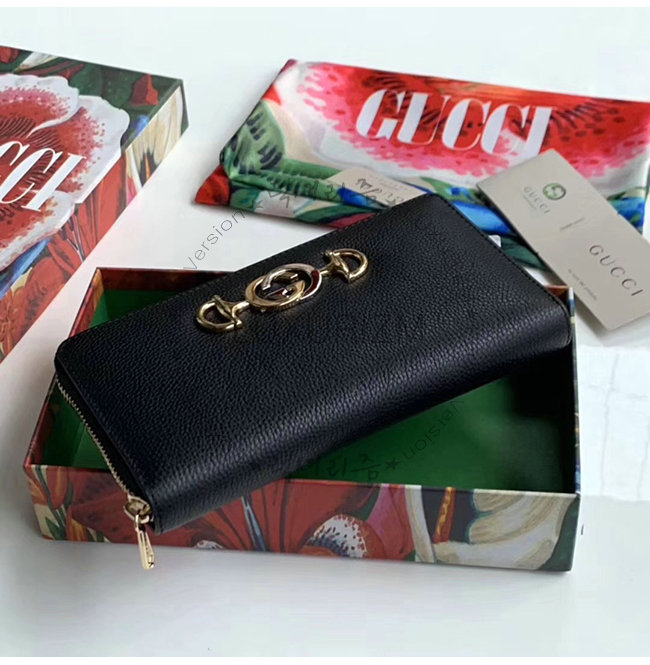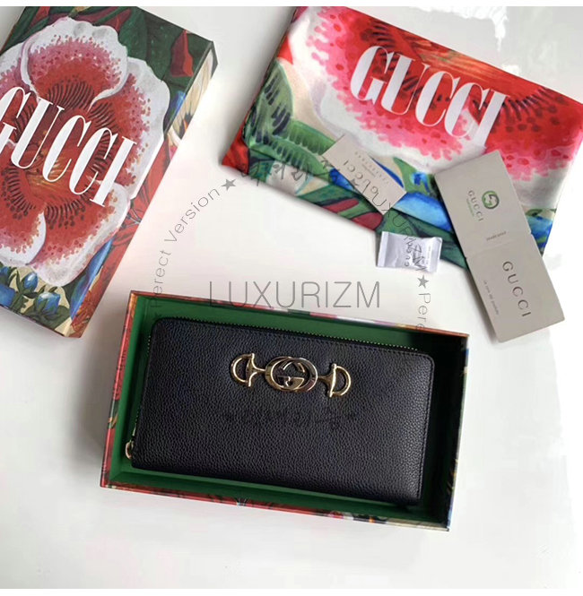 [스페셜오더]GUCCI-570661 1000 구찌 주미 블랙 그레이니 가죽 집어라운 월릿