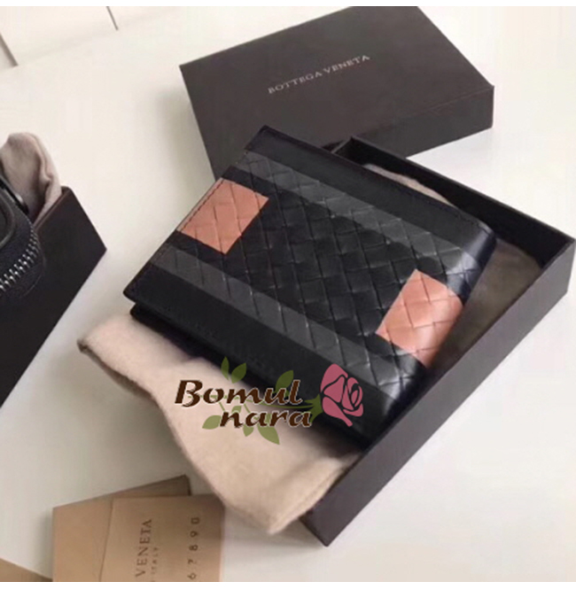 [스페셜오더]BOTTEGA VENETA-193642 보테가 베네타 네로 그레이 스트라이프 인트레치아토 VN 코인 퍼스 폴더 지갑