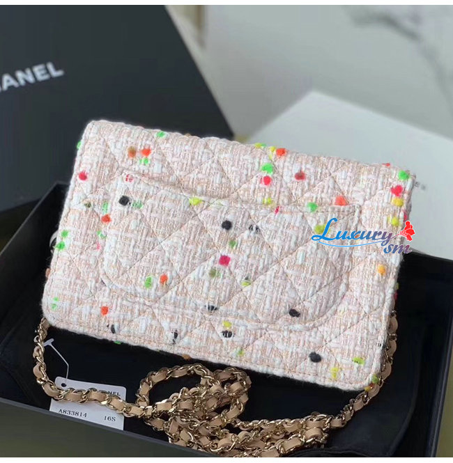 [스페셜오더]CHANEL-A33814 샤넬 코랄 코튼 트위드 골드메탈 클래식 체인지갑