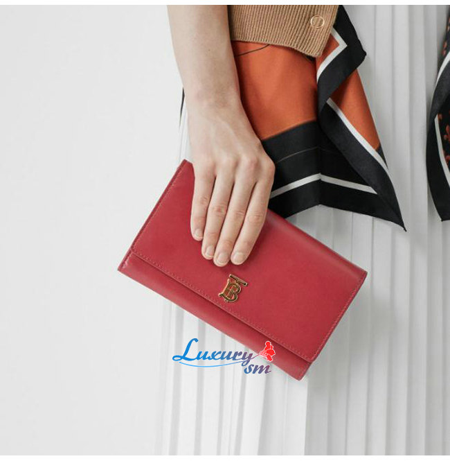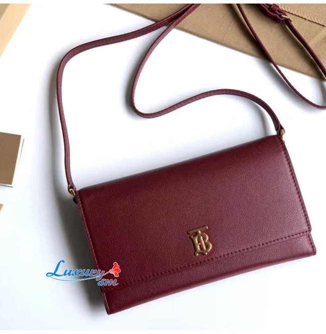 [스페셜오더]BURBERRY-80097551 버버리 레드 송아지 가죽 디태처블 스트랩 모노그램 모티프 지갑
