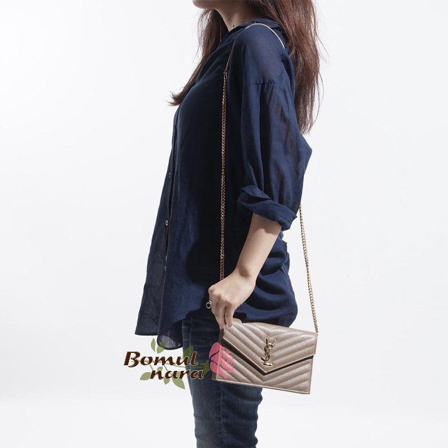 [스페셜오더]SAINT LAURENT-393953 생 로랑 금장 파우더 마틀라세 모노그램 엔벨로프 woc 체인지갑