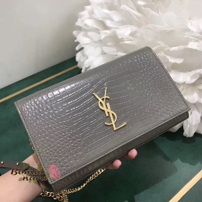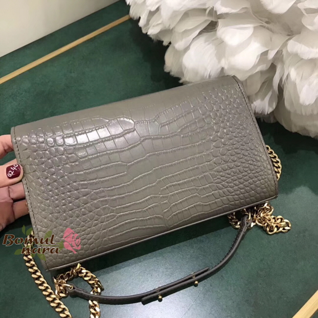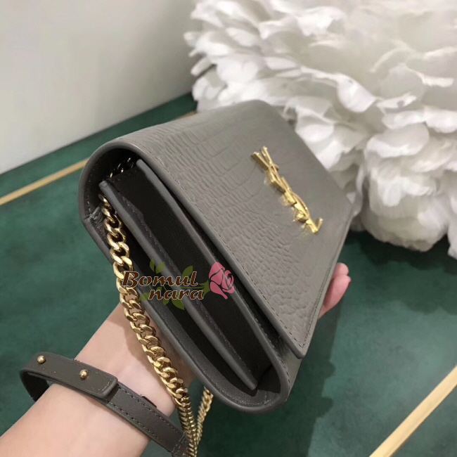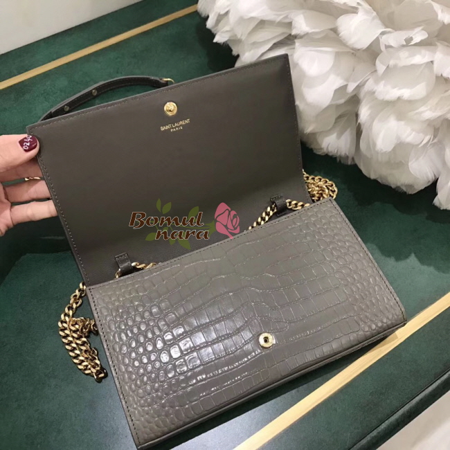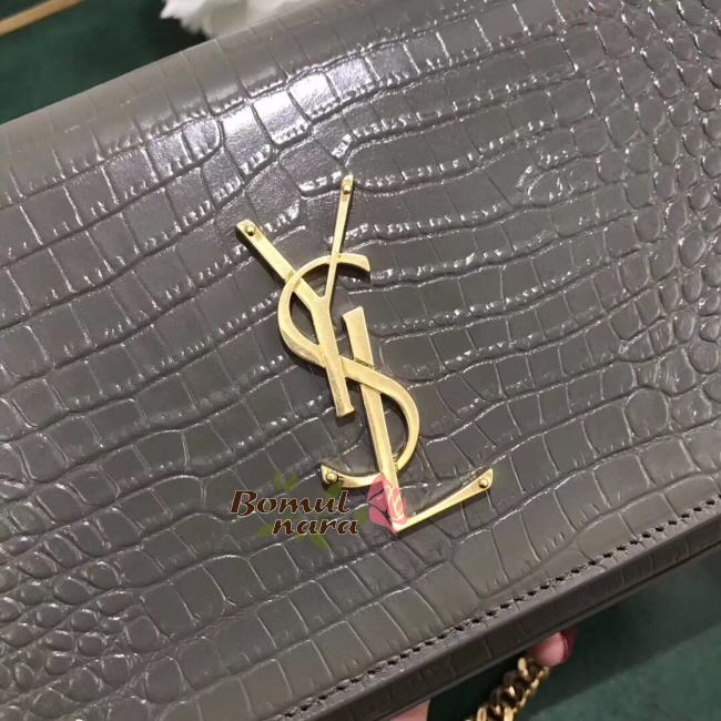 [스페셜오더]SAINT LAURENT-377829 생 로랑 그레이 골드 크로커다일 무늬 모노그램 체인 지갑