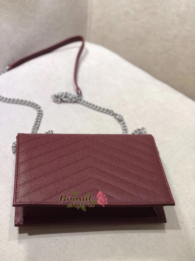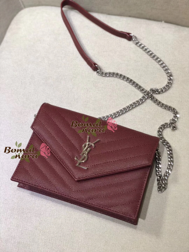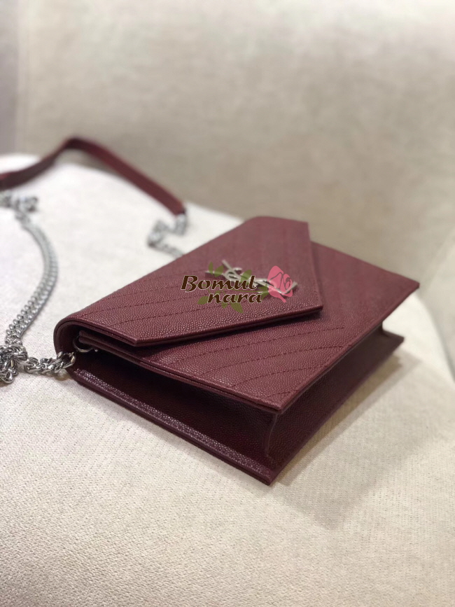 [스페셜오더]SAINT LAURENT-393953 생 로랑 다크 레드 실버 마틀라세 모노그램 엔벨로프 woc 체인 지갑
