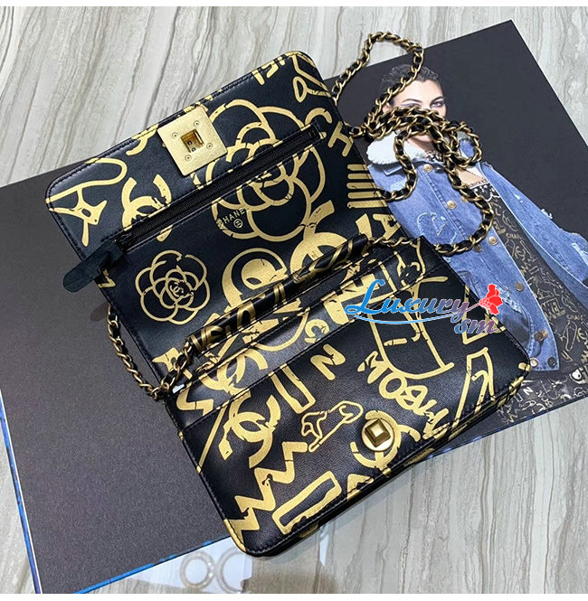 [스페셜오더]CHANEL-AP0388 샤넬 블랙 프린티드 카프스킨 체인지갑