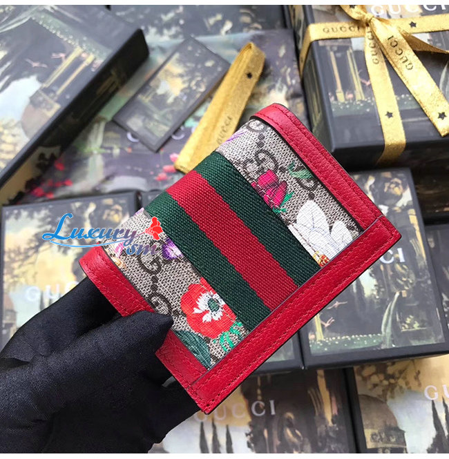 [스페셜오더]GUCCI-523155 8722 구찌 오피디아 레드 GG 플로라 카드 케이스 지갑