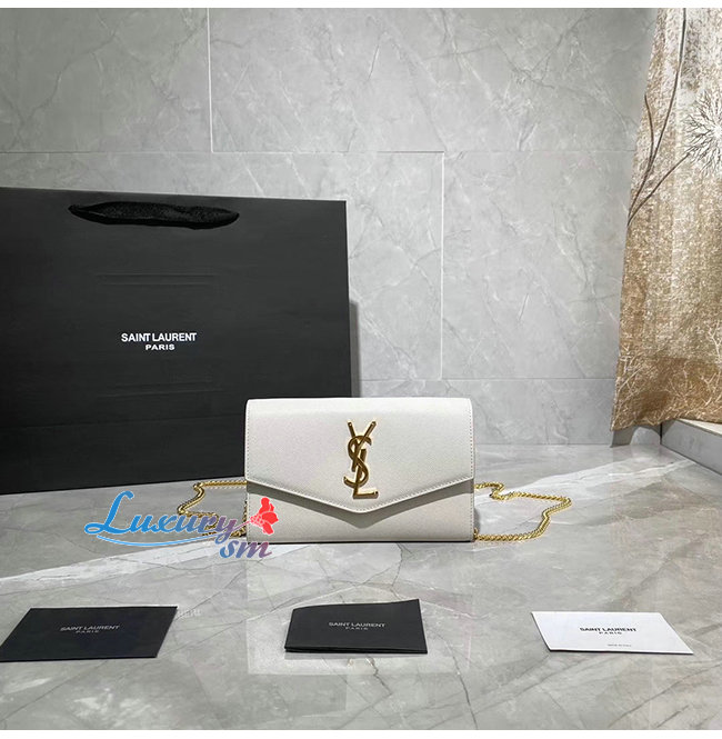 [스페셜오더]SAINT LAURENT-607788 생 로랑 화이트 송아지 가죽 업타운 체인 월릿