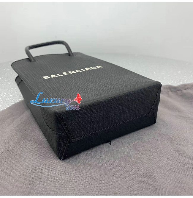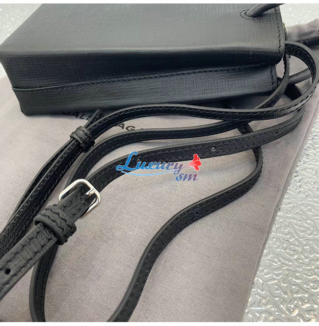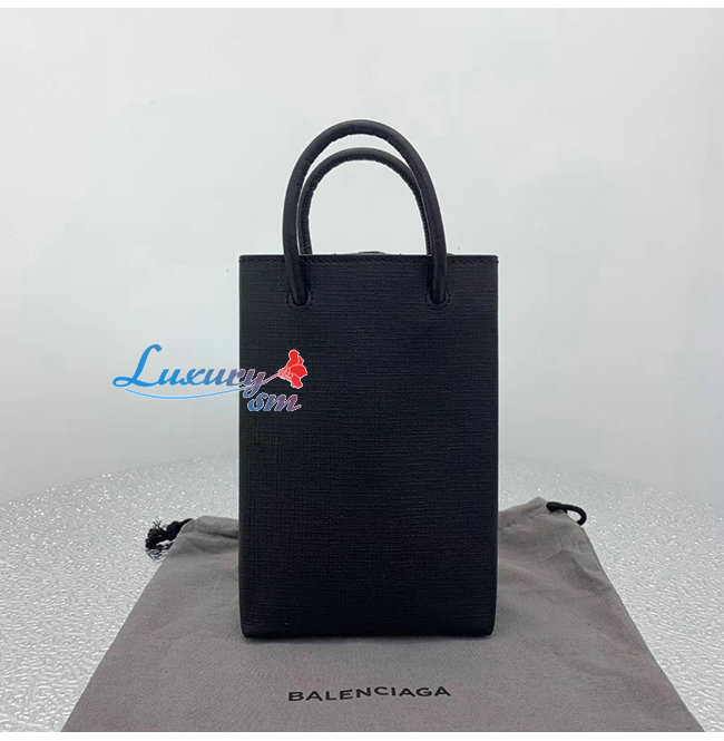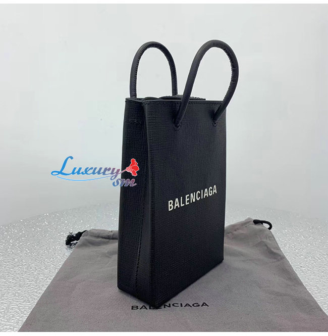 [스페셜오더]BALENCIAGA-593826 발렌시아가 블랙 스퀘어 송아지 가죽 쇼핑 휴대폰 지갑 백