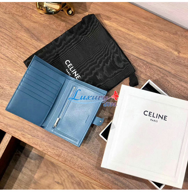 [스페셜오더]CELINE-10B643 셀린느 블루 카프스킨 미디엄 스트랩 월릿