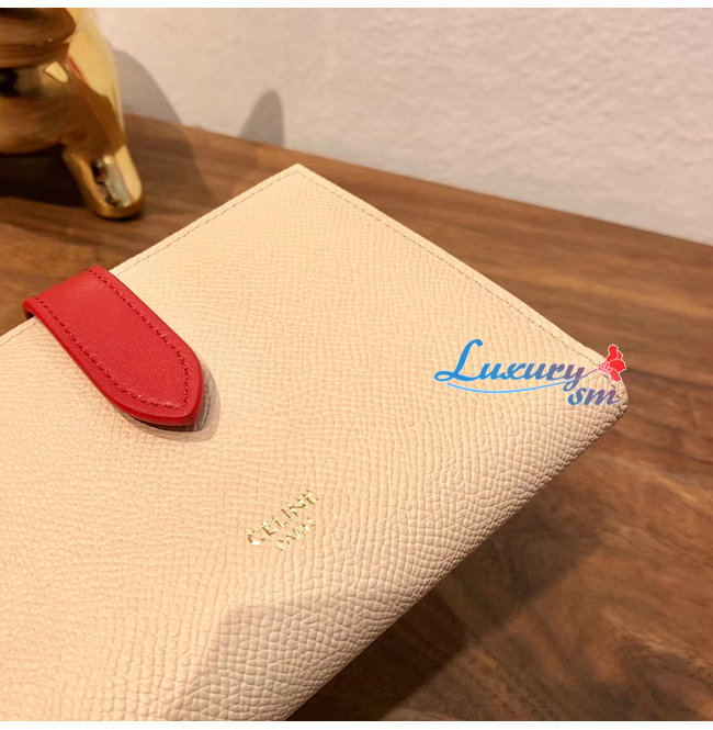 [스페셜오더]CELINE-10B643 셀린느 파우더/레드 카프스킨 미디엄 스트랩 월릿