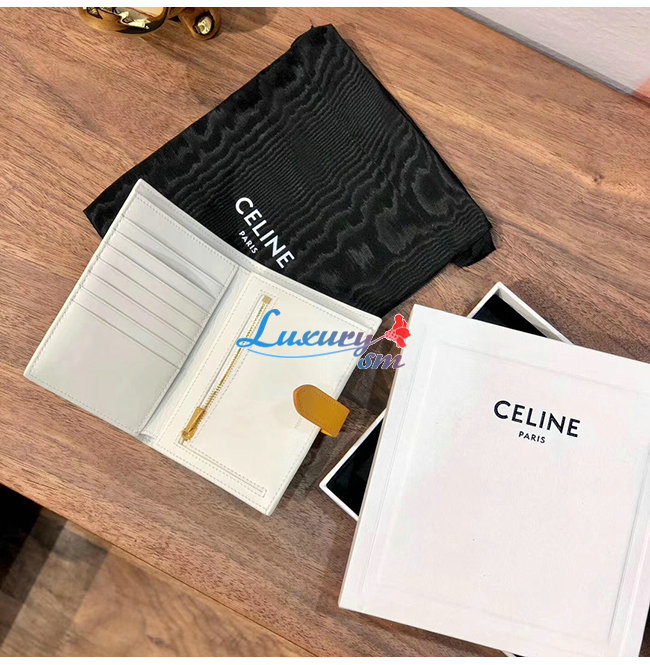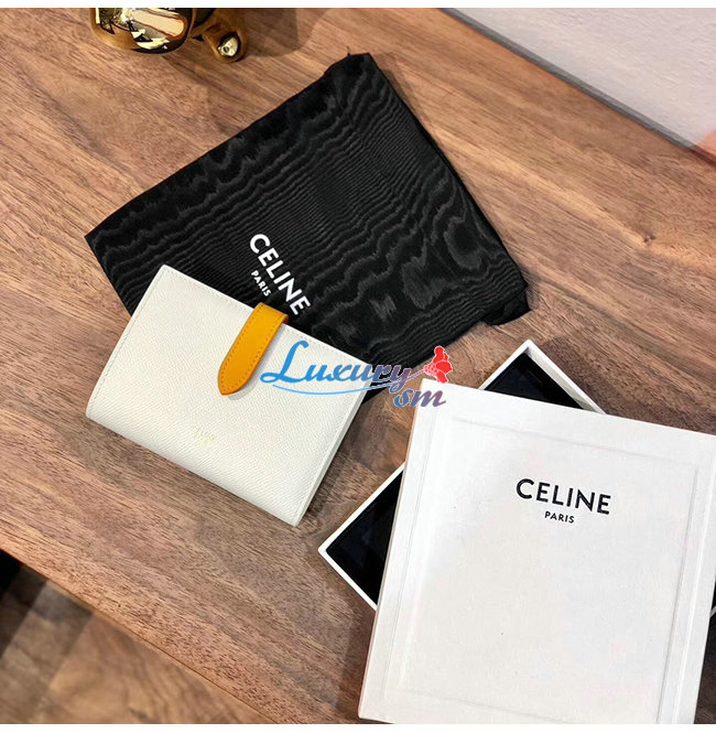 [스페셜오더]CELINE-10B643 셀린느 화이트/브라운 카프스킨 미디엄 스트랩 월릿