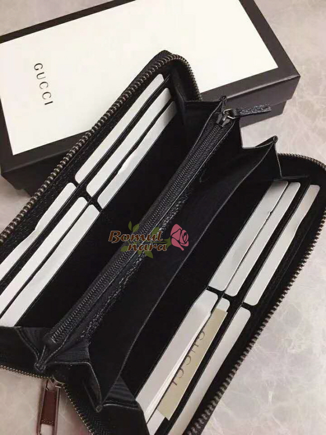 GUCCI 스크립트 로고와 가죽디테일 장식이 돋보이는 지갑