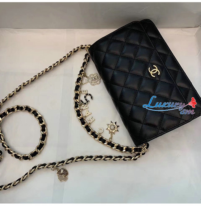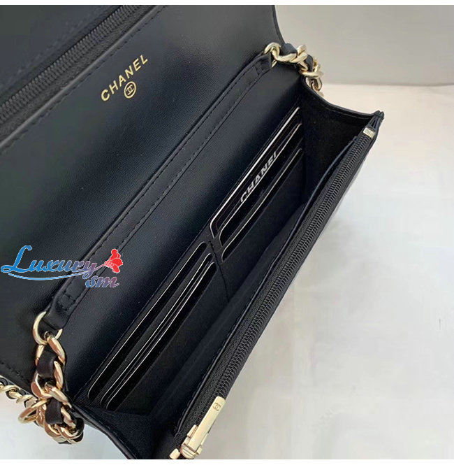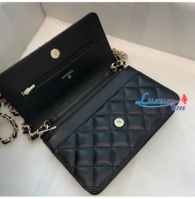 [스페셜오더]CHANEL-AP1960 샤넬 블랙 램스킨 참장식 골드메탈 체인 지갑