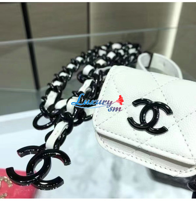 [스페셜오더]CHANEL-AP1956 샤넬 화이트 그레인드 카프스킨 래커드 메탈 AirPods Pro 홀더 벨트