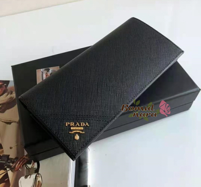 [스페셜오더]PRADA-2MV836 프라다 사피아노 가죽 메탈 로고 블랙 장지갑