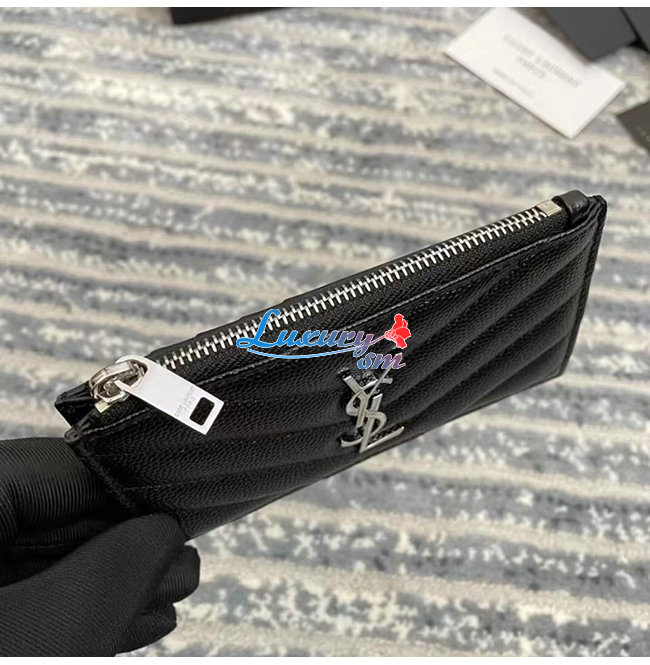 [스페셜오더]SAINT LAURENT-607915 생 로랑 블랙 모노그램 프라그망 실버 메탈 지퍼 카드 케이스
